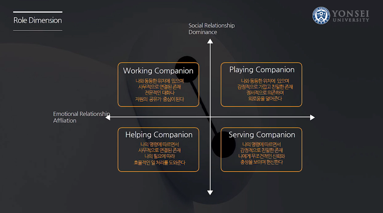 Social Relationship과 Emotional Relationship 두 가지 관계를 통해 4가지 Companion을 생각할 수 있습니다.
