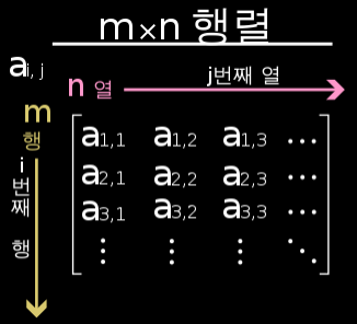 - $A_{i,j}$ : A 행렬의 i행(Column)과 j열(Row)을 가리킵니다.