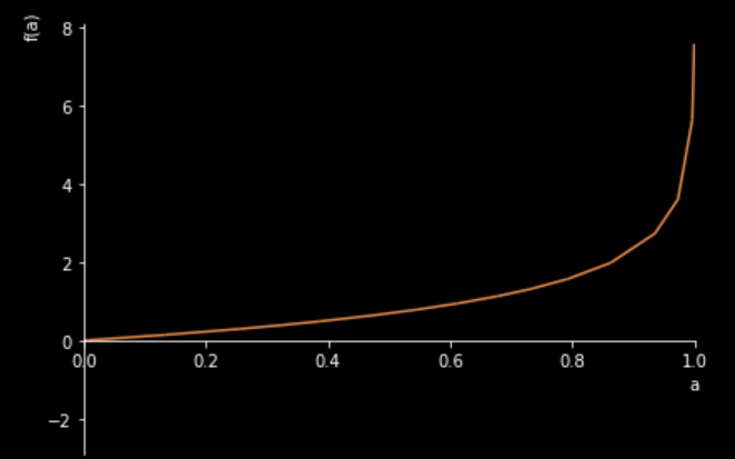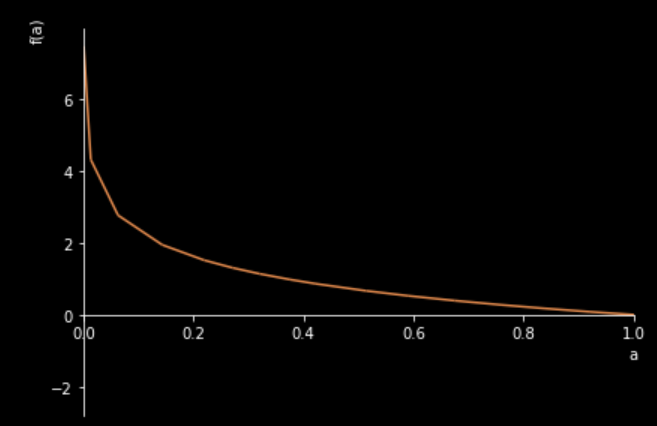 먼저 만약 $y=1$이라면 $L = -\log(a)$만 남게 됩니다. 그래프로 표현하면 다음과 같습니다.