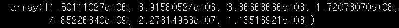 그리고 $\hat{\mathbf{y}}$는 예측한 변수들을 모아놓은 벡터이고, $\mathbf{y}$는 실제 연비들을 모아놓은 벡터입니다.