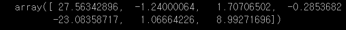 loss 값이 낮아지며 params가 학습 완료되었습니다. 학습된 params는 다음과 같고, 예측 값을 params와 $\mathbf{X}$의 곱으로 나타낼 수 있습니다.