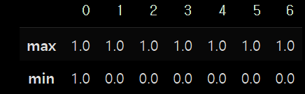 pandas.DataFrame(X_scaled).describe().loc[['max', 'min']]
