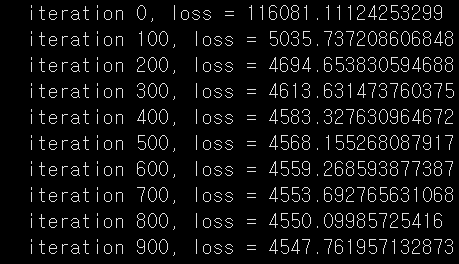 기울기 값이 매우 크게 나오는 것을 알 수 있습니다. 이상태로 한 번 gradient descent를 진행해봅니다.
